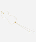 Y-shaped necklace in plain or fine gold-plated steel, featuring a coffee bean-shaped charm set with 3 zirconiums. Two delicate chains hang from the charm.